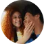 Una barra de búsqueda que dice 'Ideas para citas divertidas' con flores, comida, un mapa y una pareja riendo en el fondo.